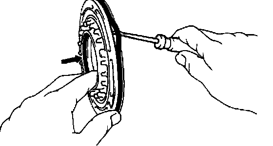 Using a screwdriver, remove the snap ring from the clutch drum.