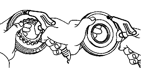 b. Check that the end gap of snap ring is not aligned with one of the cutouts.