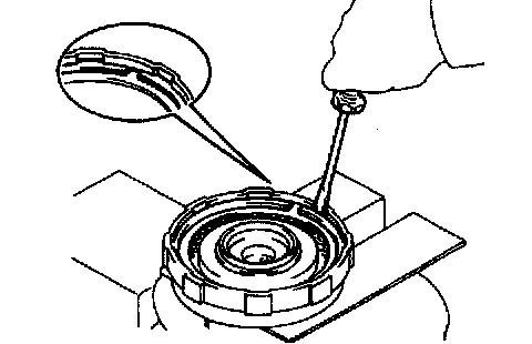 b. Using a small screwdriver, remove the 2 O-rings from the piston.