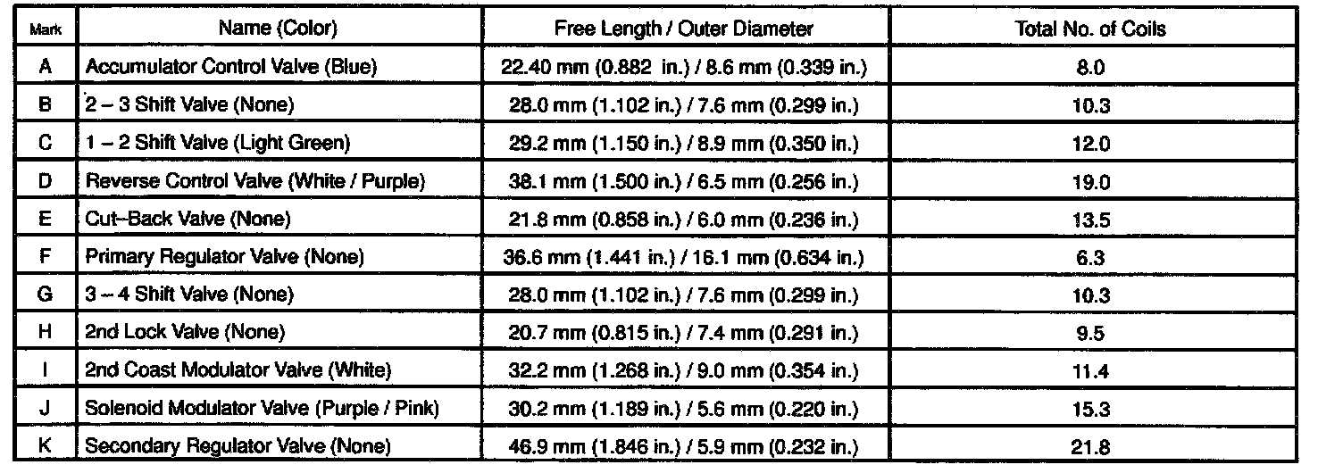During reassembly please refer to the spring specifications above to help discriminate between the different springs.
