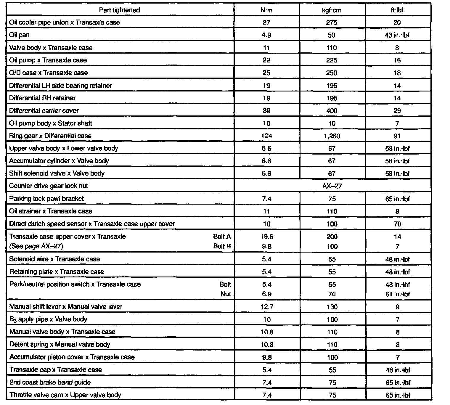 TORQUE SPECIFICATIONS