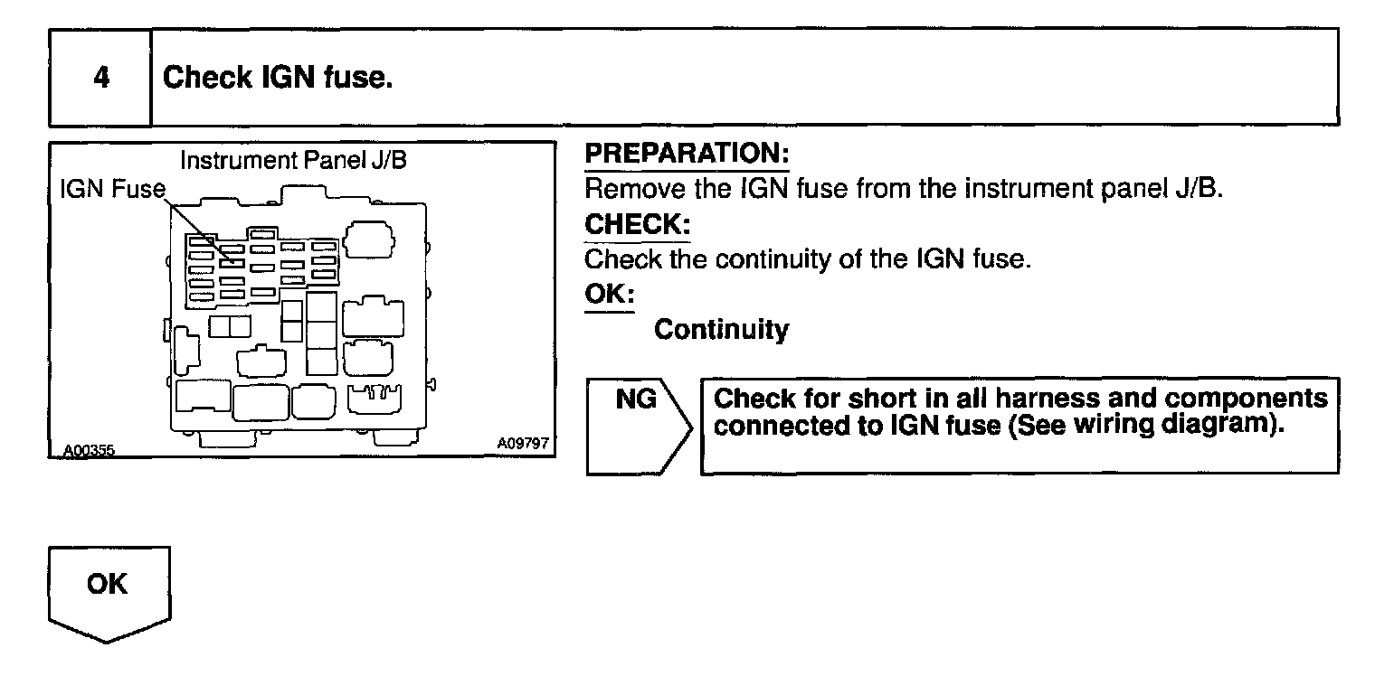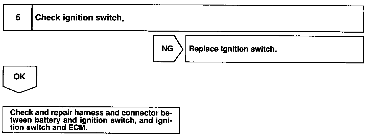 CIRCUIT INSPECTIONWhen the ignition switch is turned on, battery positive voltage is applied to terminal IGSW of the ECM and the EFI main