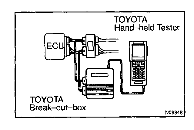 1. Hook up the TOYOTA hand-held tester and TOYOTA break-out-box to the vehicle.
