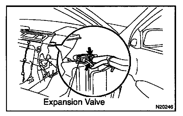c. Using a hexagon wrench, remove the 2 bolts and separate the expansion valve and evaporator.