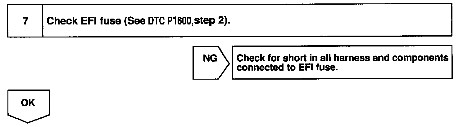 CIRCUIT INSPECTIONWhen the ignition switch is turned on, battery positive voltage is applied to terminal IGSW of the ECM and the EFI main relay (Marking: EFI) control circuit in the ECM sends a signal to terminal MREL of the ECM switching on the EFI main relay.