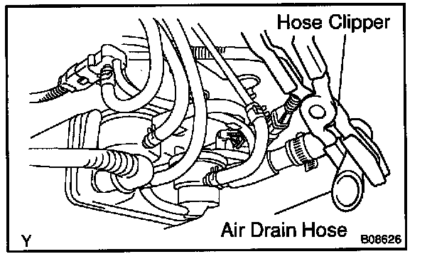 1. Close off the air drain hose at the marked position of the canister with a hose clipper or similar instrument.