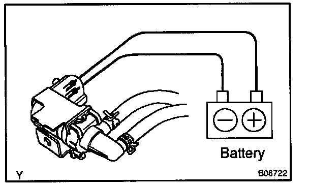 2. Connect the positive (+) and negative (-) leads from the battery to the VSV terminals for the EVAP