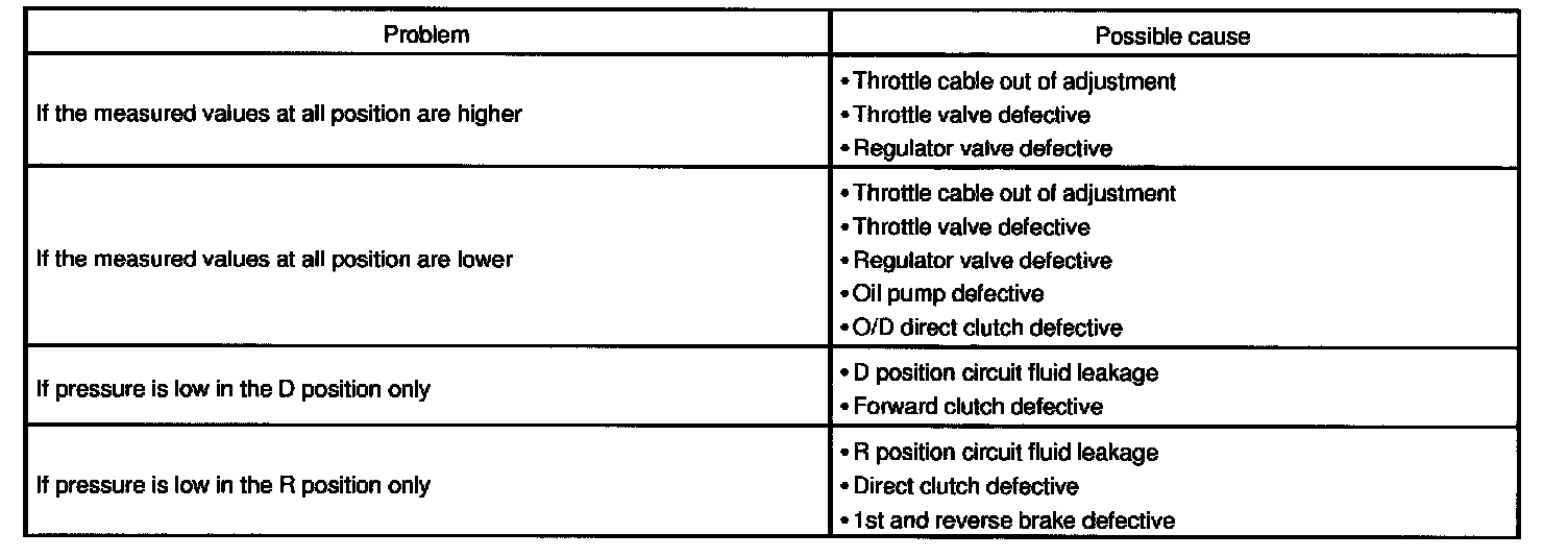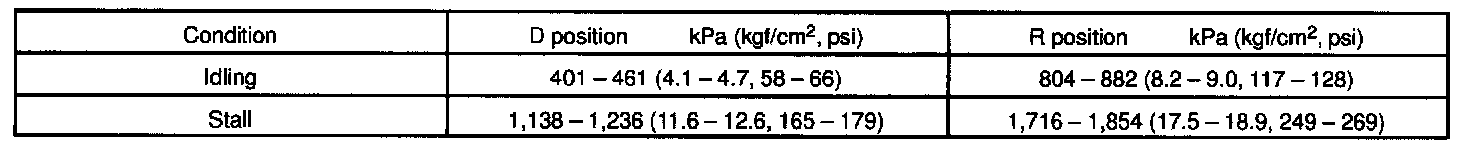 8. Depress the accelerator pedal all the way down. Quickly read the highest line pressure when engine speed reaches stall speed.