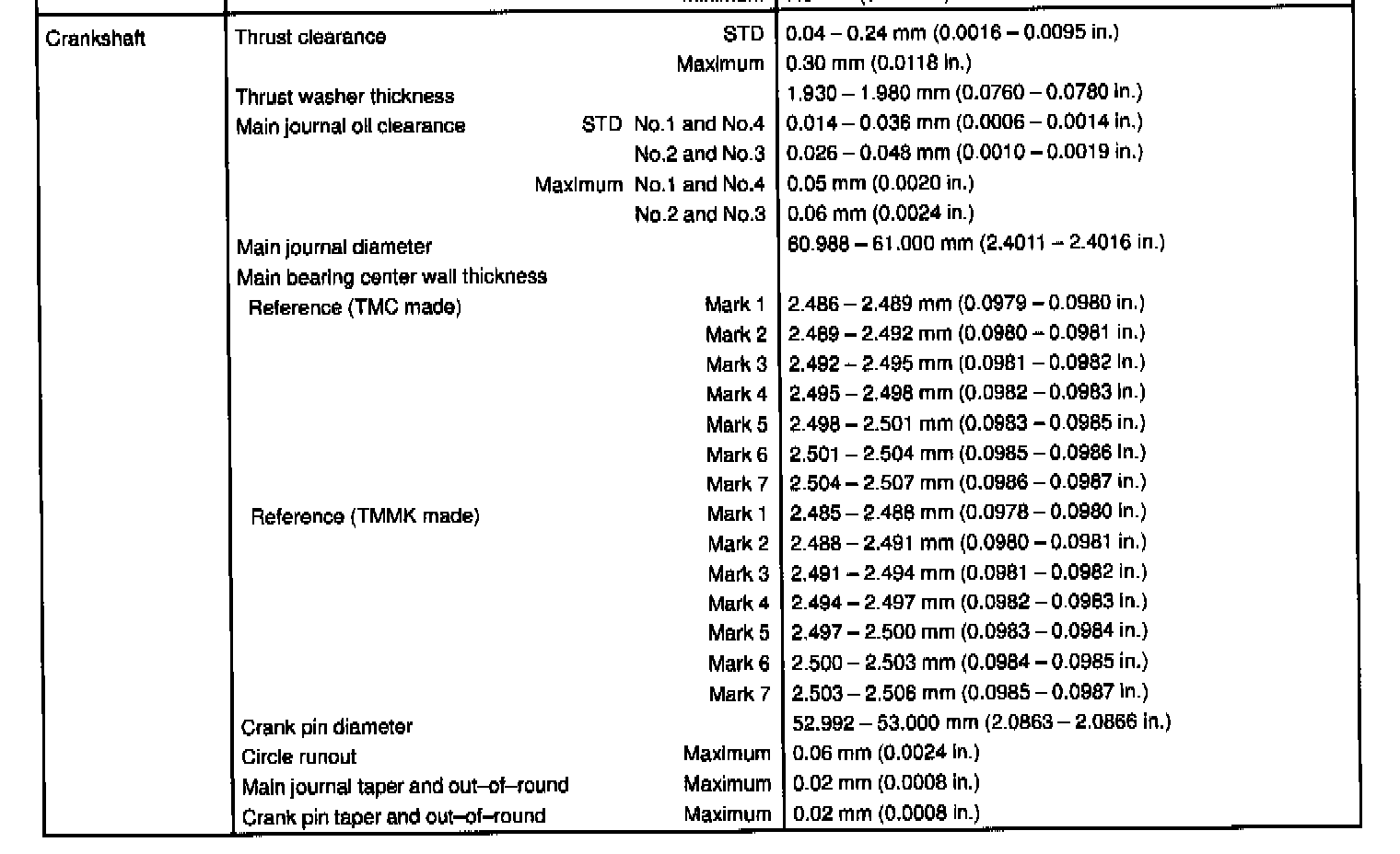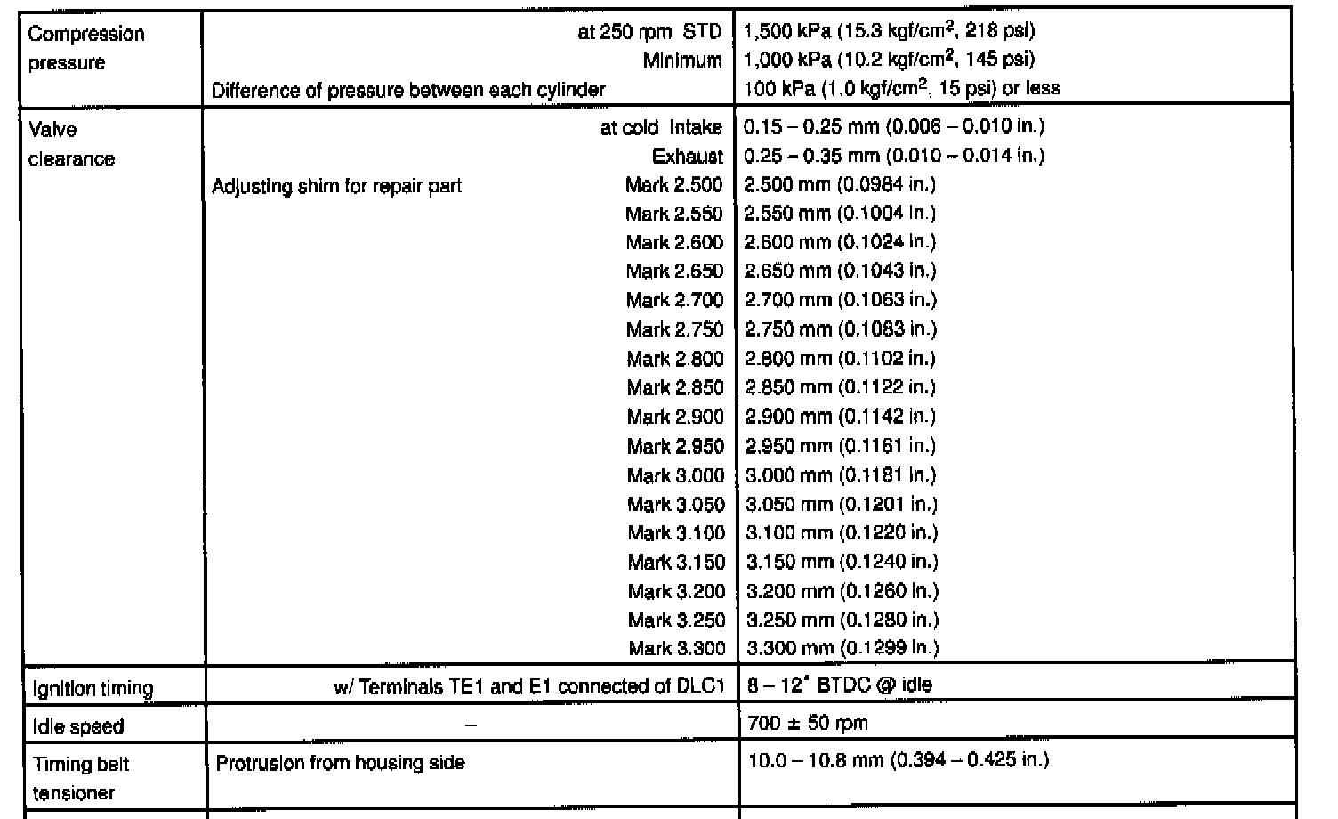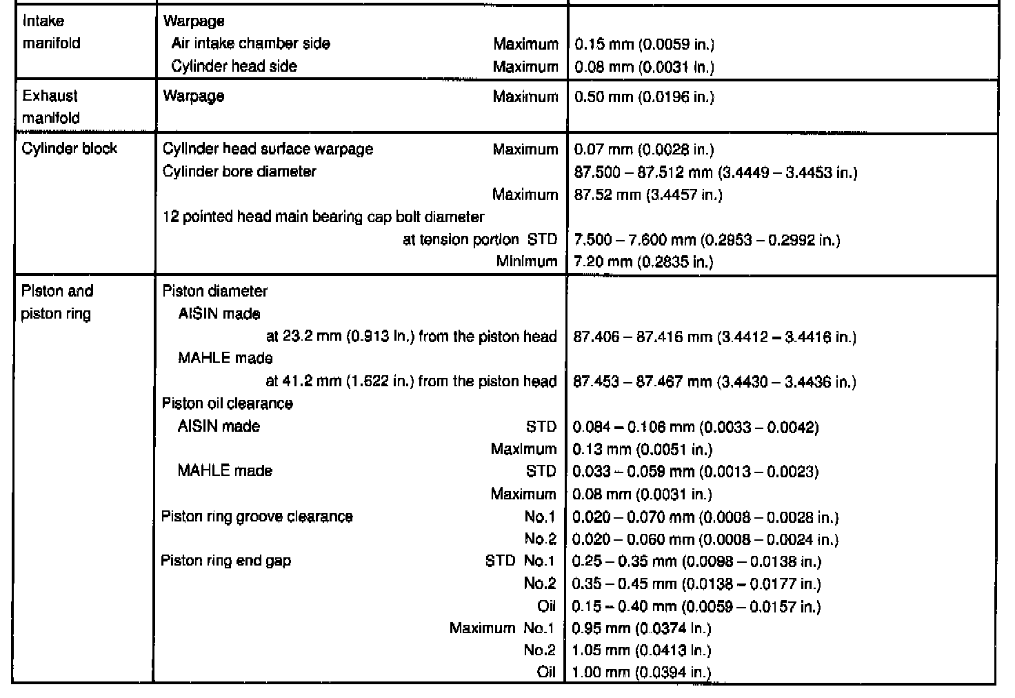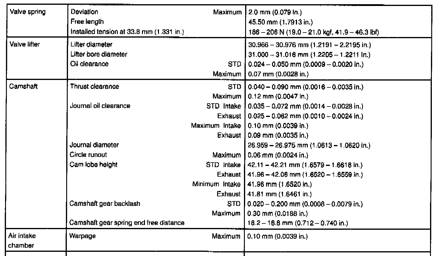 1MZ-FE Engine Mechanical Data: