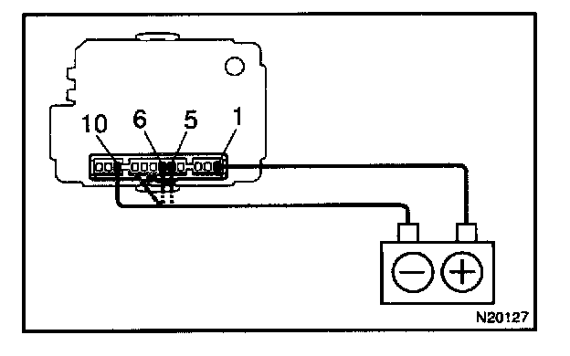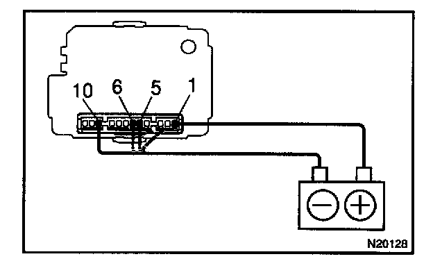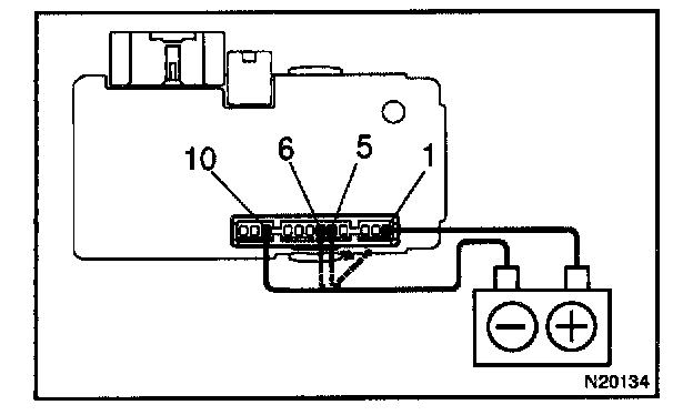 b. Connect the negative (-) lead from the battery to terminals 5, 6 and 10.