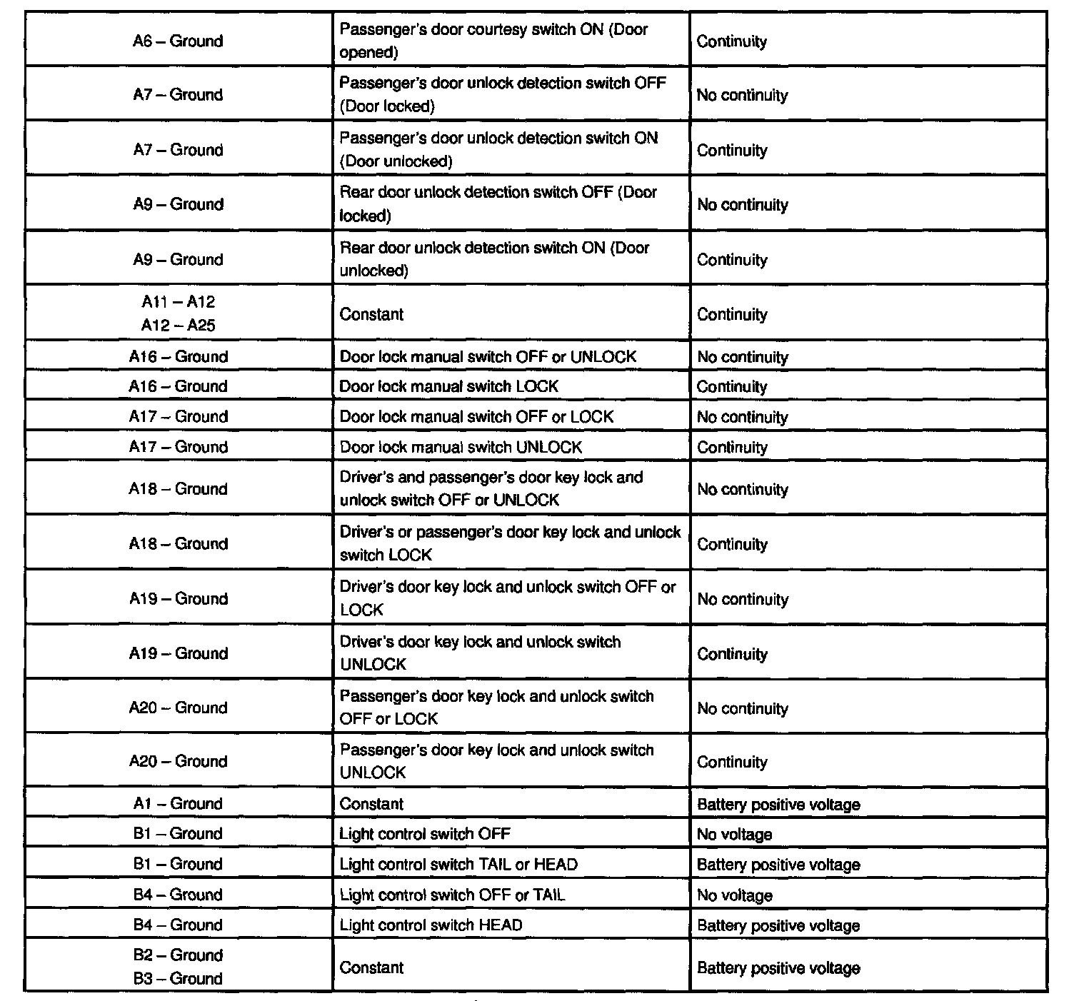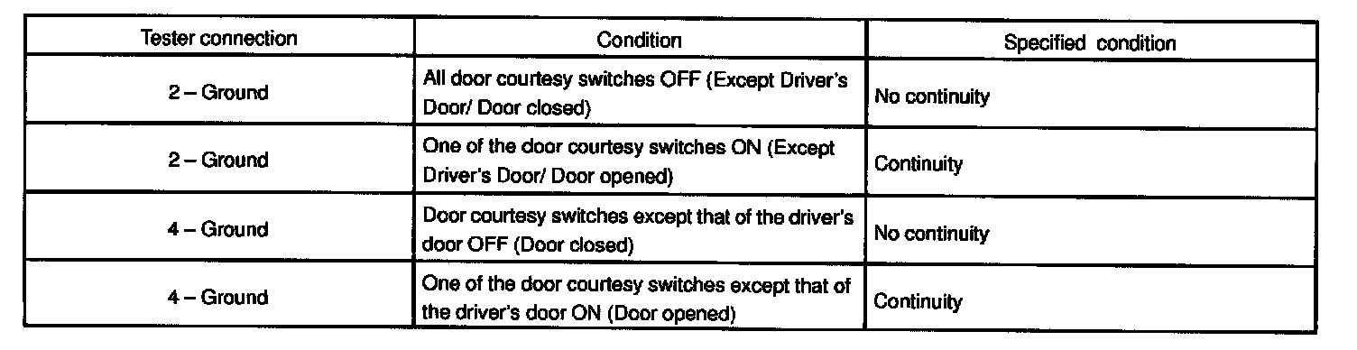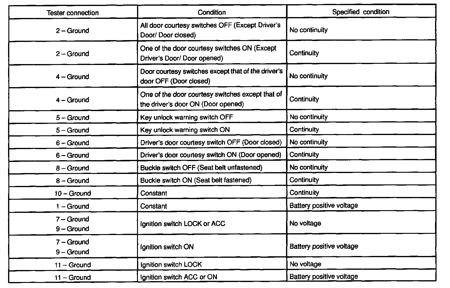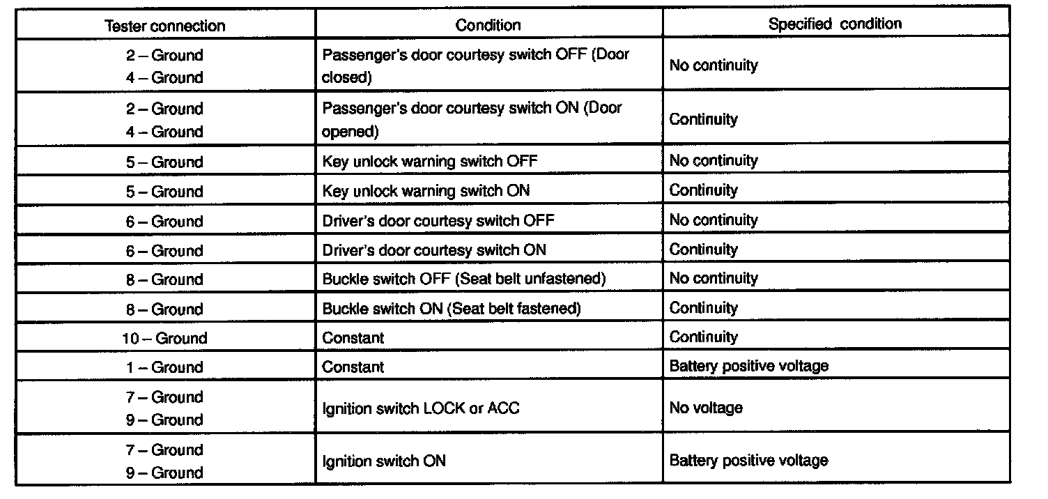 2. INSPECT KEY UNLOCK WARNING SWITCH CONTINUITY