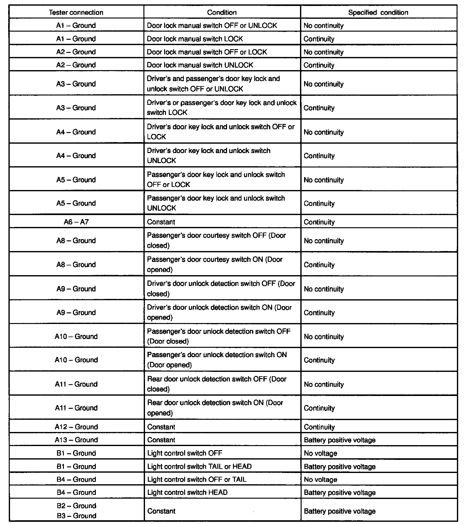 If the circuit is not as specified, inspect the circuits connected to other parts.