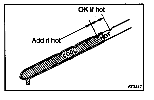 - Only use the COOL range on the dipstick as a rough reference when the fluid is replaced or the engine does not run.