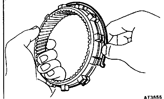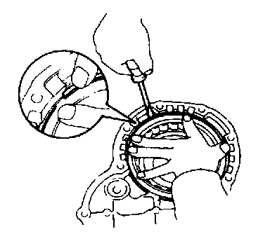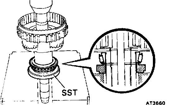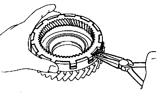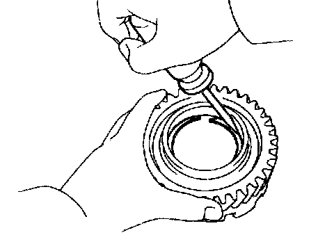 b. While pushing down the ring gear, squeeze the snap ring and with needle-nose pliers, and install it into the groove.