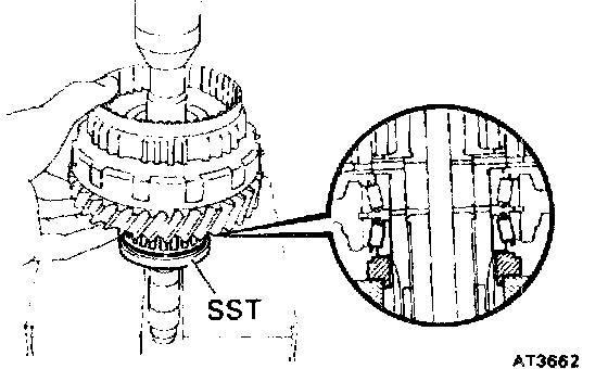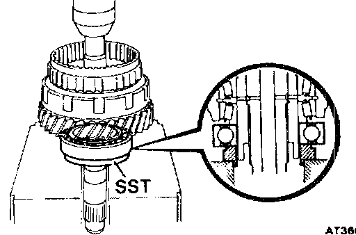 Using SST, press in the 2 outer races to both sides of the gear.