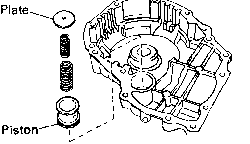 c. Install the accumulator piston, 2 springs and retaining plate.