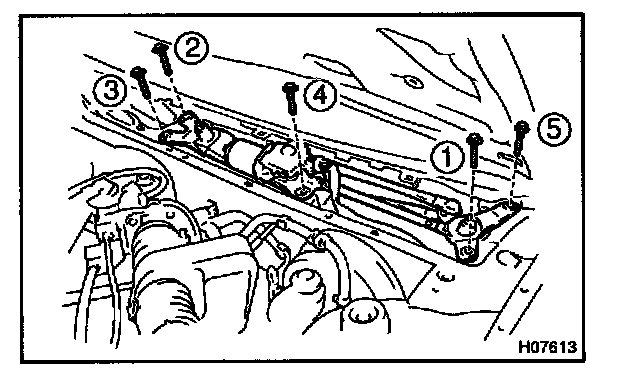 a. Install the wiper link assembly with the 5 bolts to the body panel.