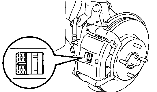 Check the pad thickness through the caliper inspection hole and replace the pads if they are not within the specification.