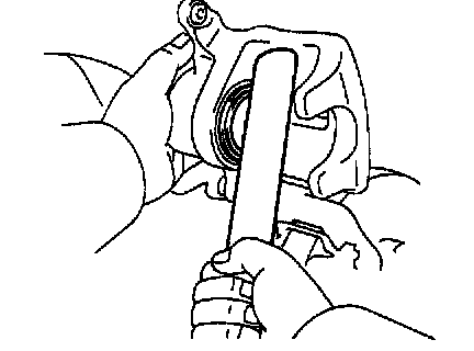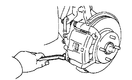HINT: Do not disconnect the flexible hose from the caliper.