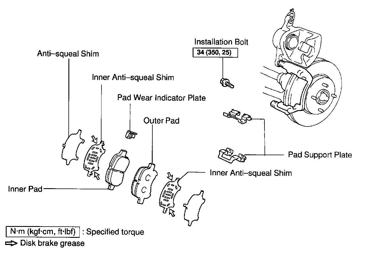 b. Apply disc brake grease to both sides of the inner anti-squeal shims.