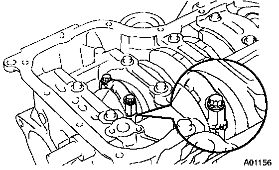 b. Remove the 2 connecting rod cap bolts.