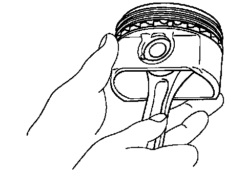Try to move the piston back and forth on the piston pin. If any movement is felt, replace the piston and pin as a set.