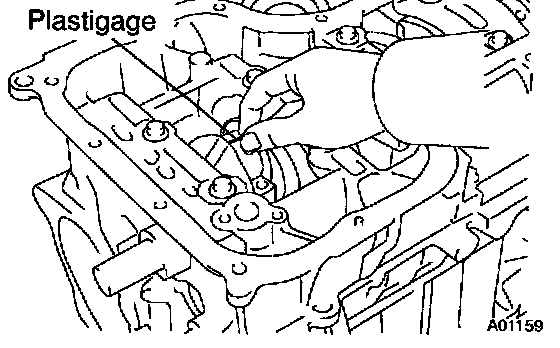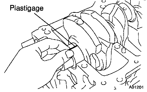 i. Lay a strip of Plastigage across each journal.