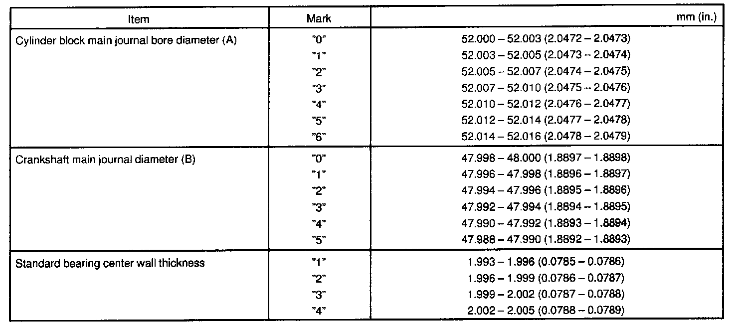 Standard oil clearance: 0.028 - 0.060 mm (0.0011 - 0.0024 inch)