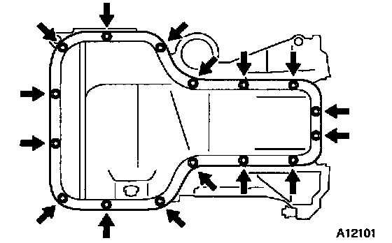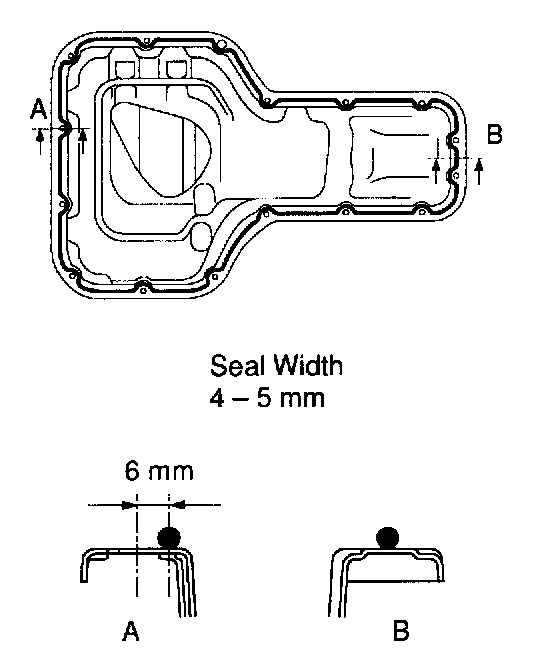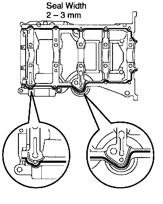 b. Apply seal packing to the oil pan as shown in the illustration.