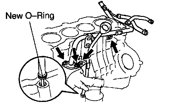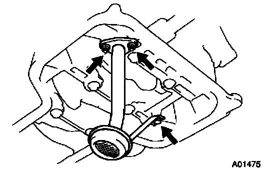 Install a new gasket and the oil strainer with the 2 nuts and bolt.