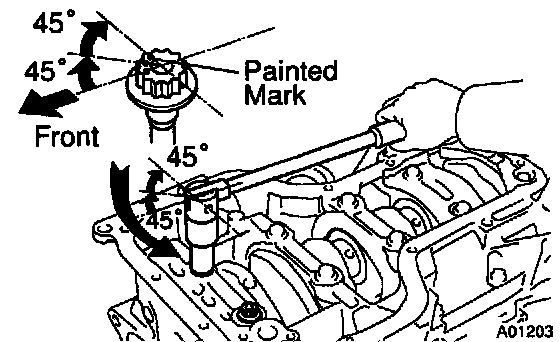 e. Retighten the bearing cap sub-assembly bolts by 45° and 45° in the numerical order shown.