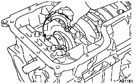 b. Align the bearing claw with the claw grove of the main bearing cap, and push in the 5 lower bearings.
