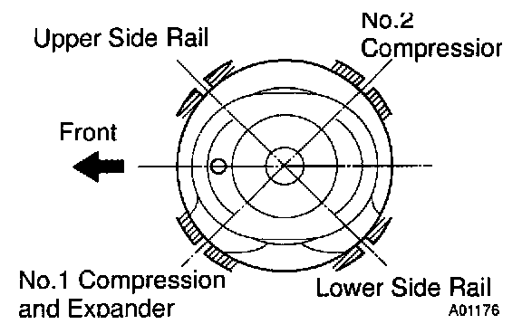 c. Position the piston rings so that the ring ends are as shown.