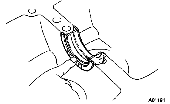 a. Align the bearing claw with the claw groove of the cylinder block, and push in the 5 upper bearings.