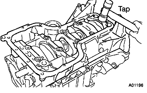 a. Remove any old packing (FIPG) material and be careful not to drop any oil on the contact surface of the main bearing cap and oil pan.