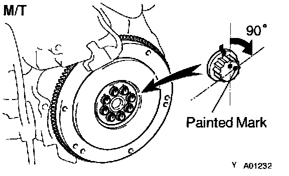 c. Retighten the flywheel bolts by an additional 90°.