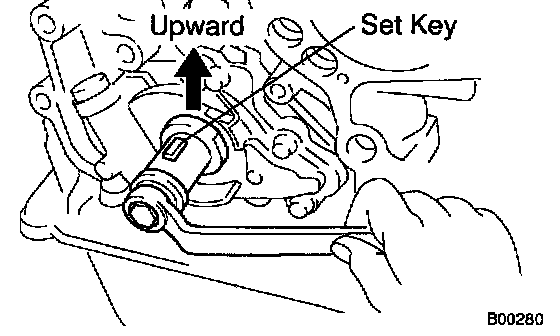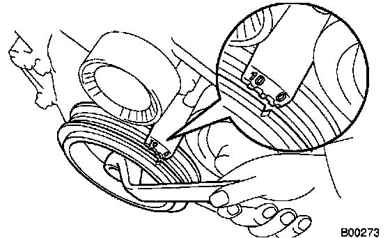 a. Turn the crankshaft pulley, and align its groove with timing mark "0" of the timing chain cover.