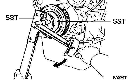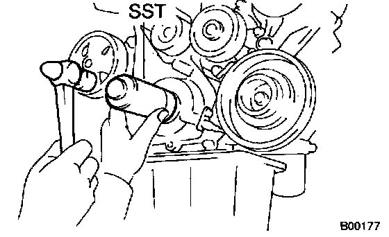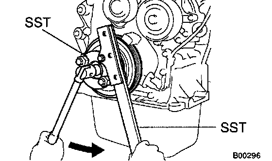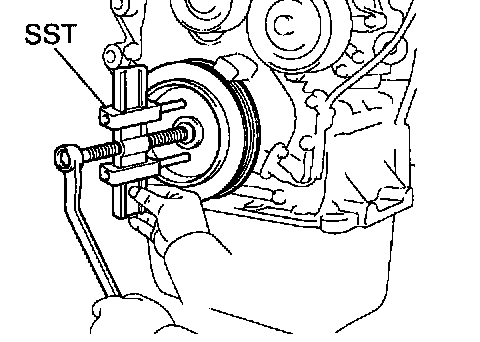 b. Using Special Service Tool (SST), remove the pulley bolt.