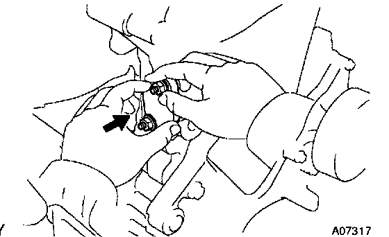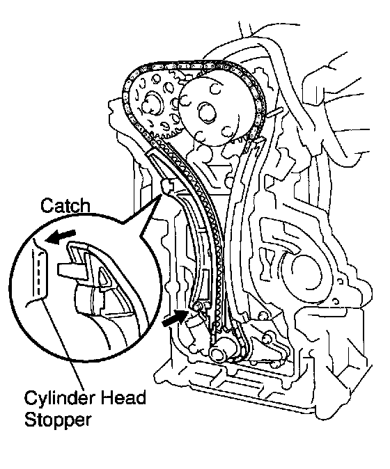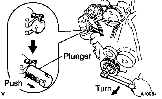 HINT: If the plunger does not spring out, press the slipper into the chain tensioner with a screwdriver or your finger so that the hook is released from the knock pin and the plunger springs out.