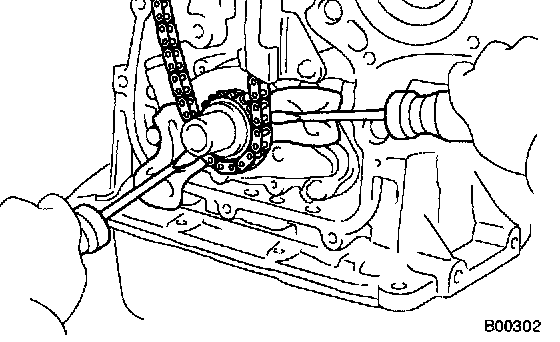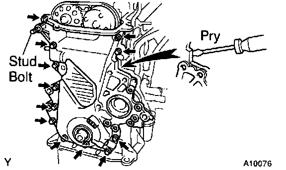c. Remove the timing chain cover by prying the portions between the cylinder head and cylinder block with a screwdriver.