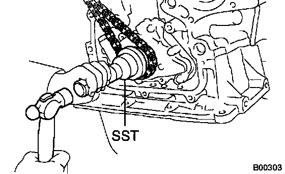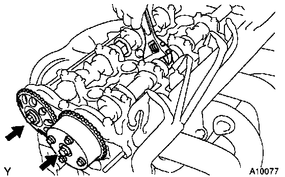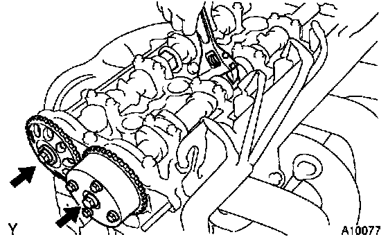 Hold the hexagonal head wrench portion of the camshaft with a wrench, and remove the bolt and timing sprocket.