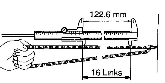 a. Using a vernier calipers, measure the length of 16 links with the chain dully stretched.