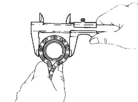 NOTICE: Vernier calipers must contact the chain rollers for measuring.