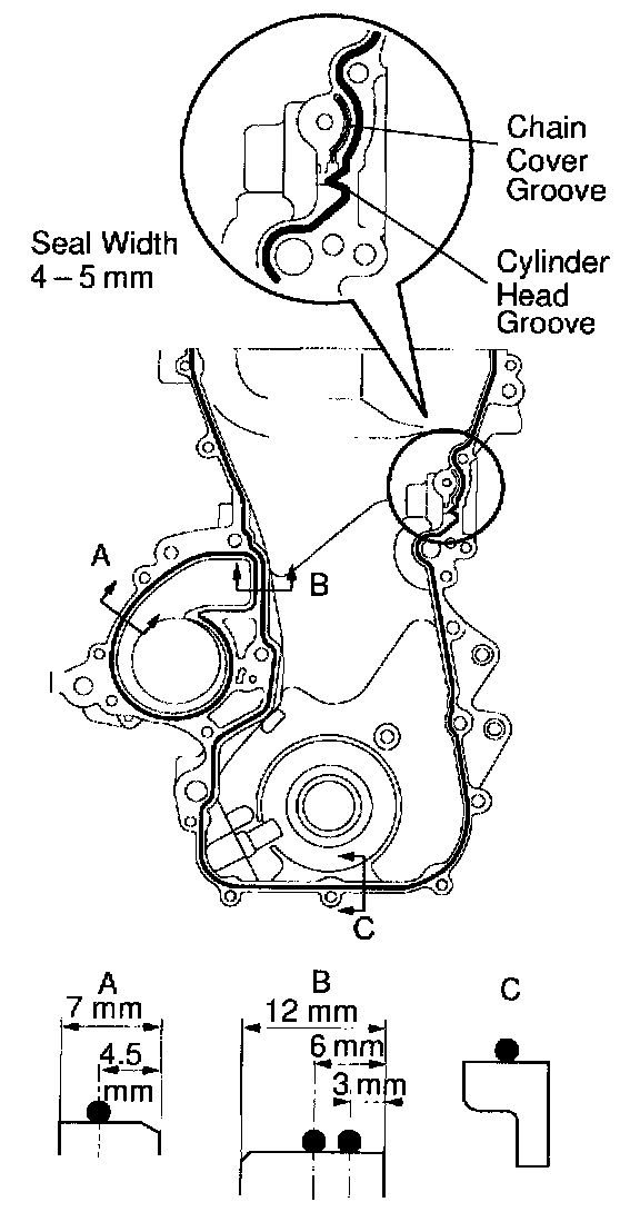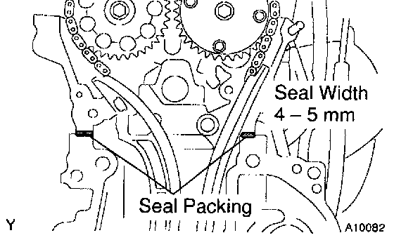b. Apply seal packing to the timing chain cover as shown in the illustration.