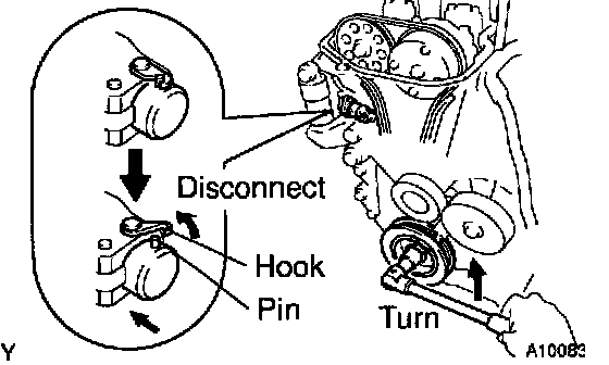 - In the case that the hook is released while pushing in, apply the hook again and push the tensioner in.