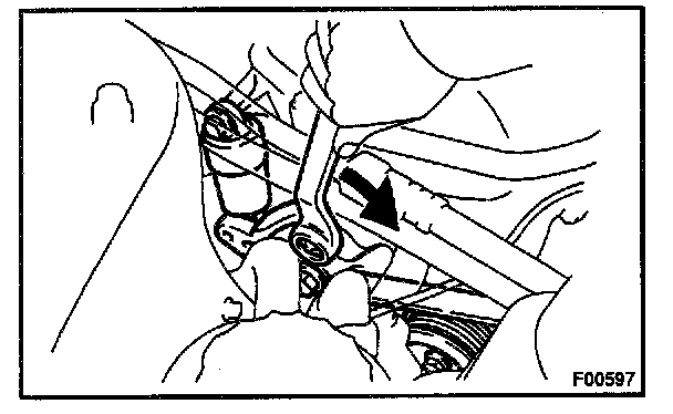 Loosen the drive belt tension by turning the drive belt tensioner clockwise, and remove the drive belt.