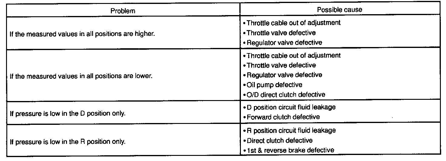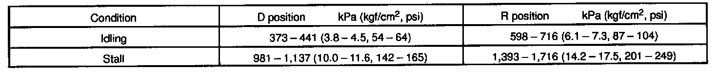 8. Fully depress the accelerator pedal, quickly read the highest line pressure when the engine speed reaches stall speed.