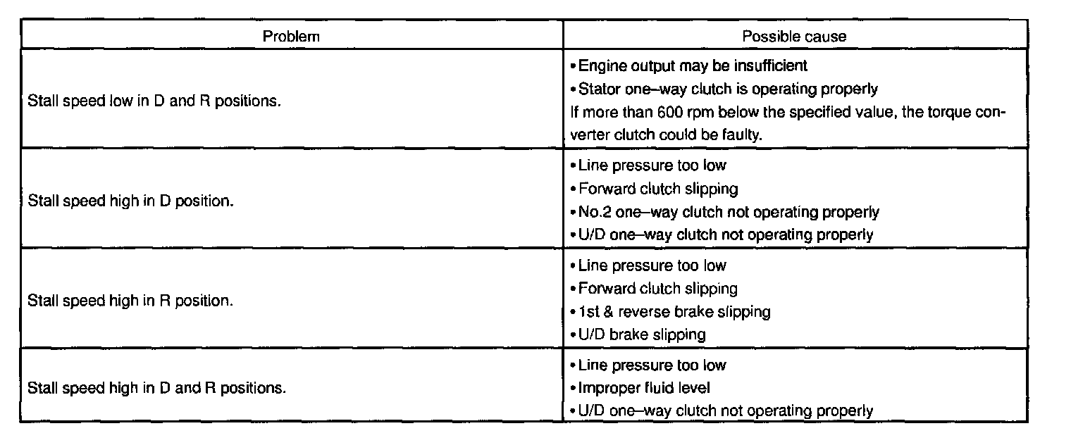 The object of this test is to check the overall performance of the transaxle and engine by measuring the stall speeds in the D and R positions.