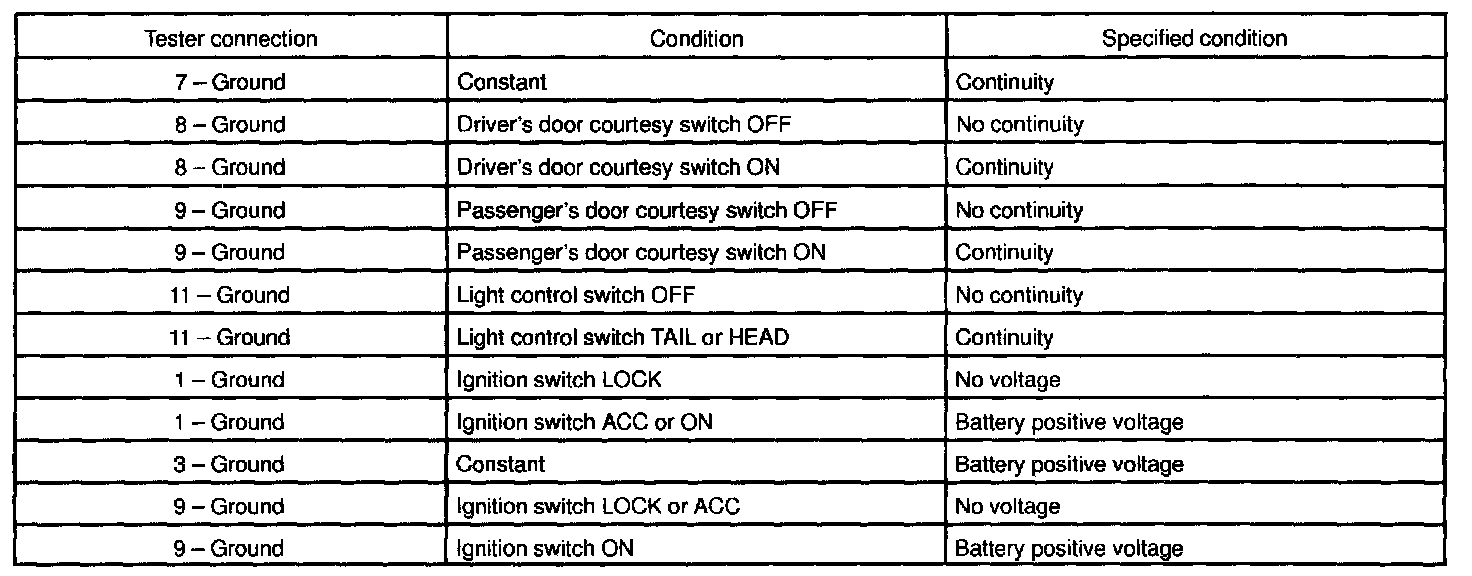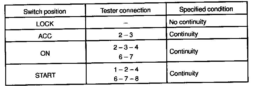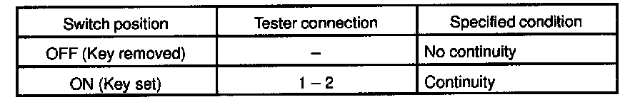 Ignition Switch and Key Unlock Warning Switch1. INSPECT IGNITION SWITCH CONTINUITY