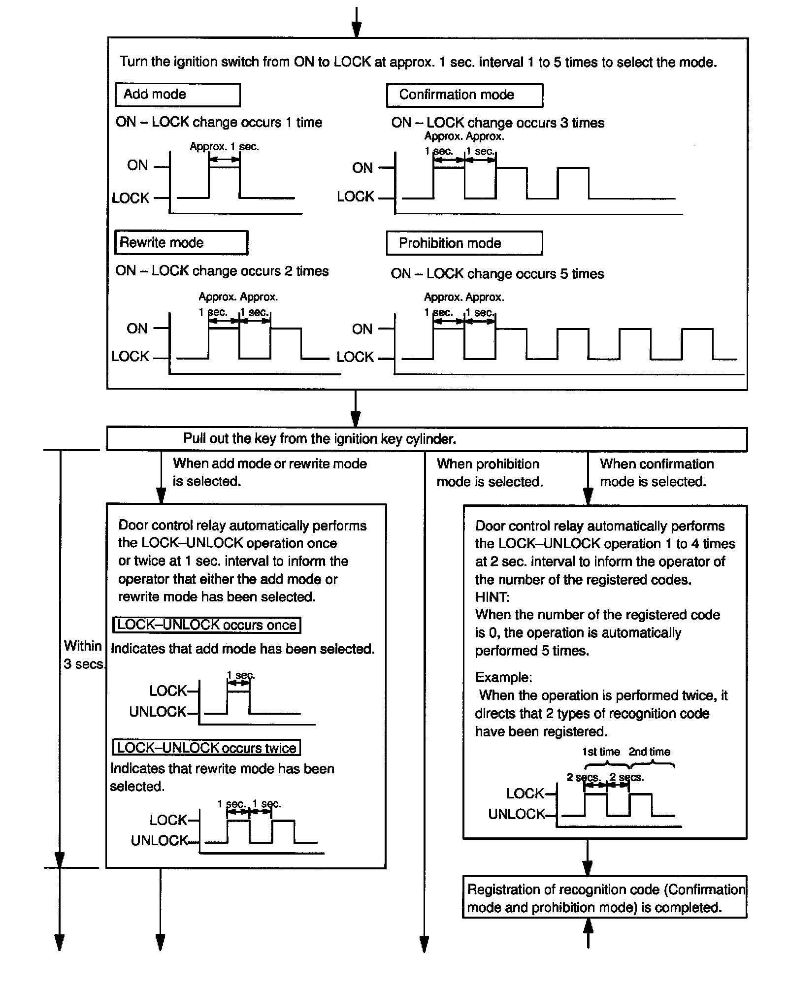 b. Follow the charts to register the transmitter recognition code at the wireless door lock control receiver.